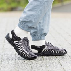 Two cords and a sole. UNEEK adapts to your feet for the perfect fit. with free-moving cords that provide freedom of movement. security. and structure.